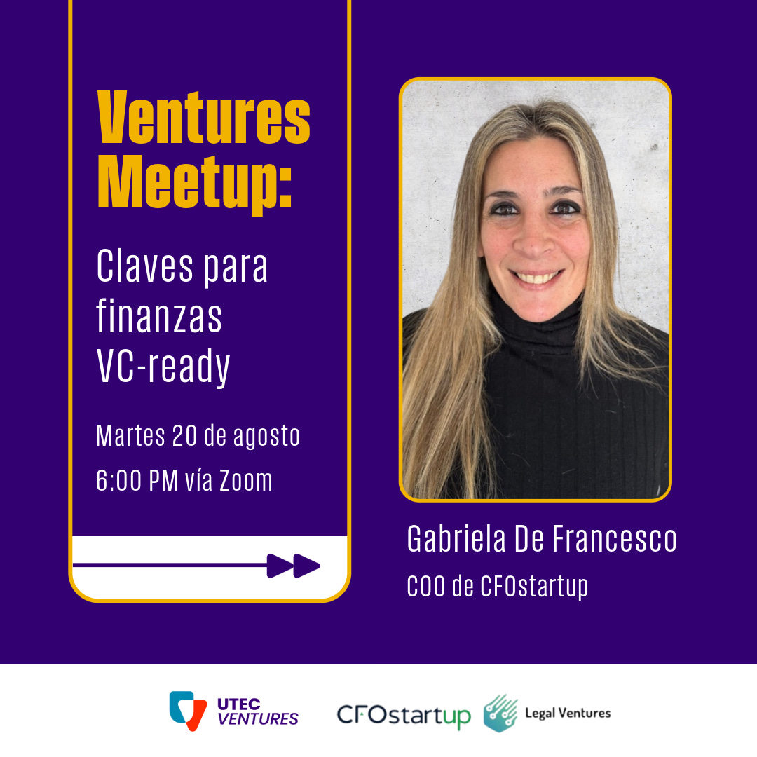 UTEC Ventures te invita a su próximo Ventures Meetup "Claves para finanzas VC-ready" junto a CFO Startup + Legal Ventures, firma de servicios financieros, impositivos, contables y legales, con clientes como Talently, Jüsto y Platanus Ventures.